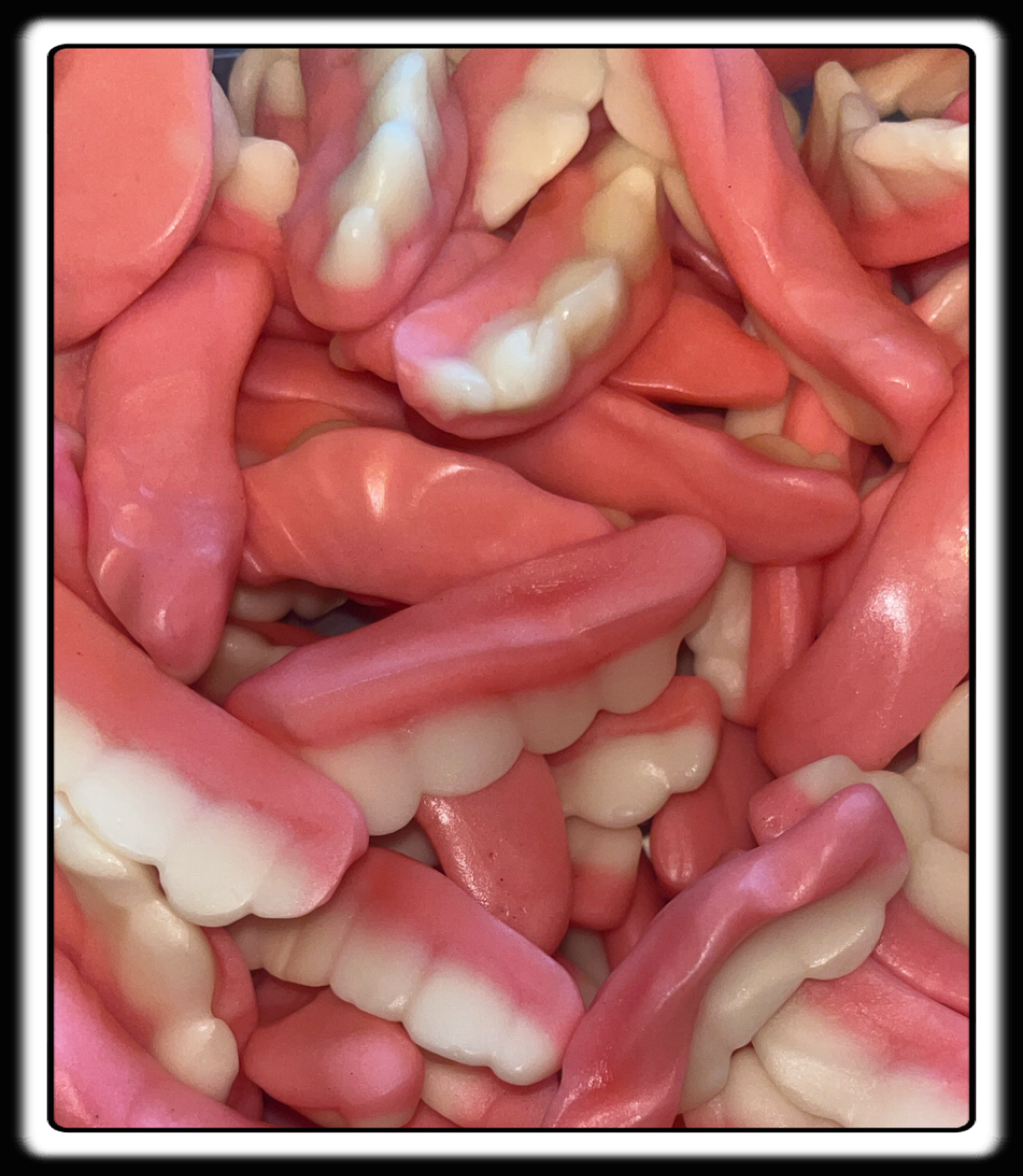 Ingrédients : (sous réserve de modification par le fabricant) Sirop de glucose, eau, sucre, amidon de maïs, gélatine de boeuf, acidifiants : acide citrique, acide malique, huile végétale (de palme et/ou de coco), agent d'enrobage : cire de carnauba, arômes, régulateur d'acidité : citrate de sodium, colorant E120.